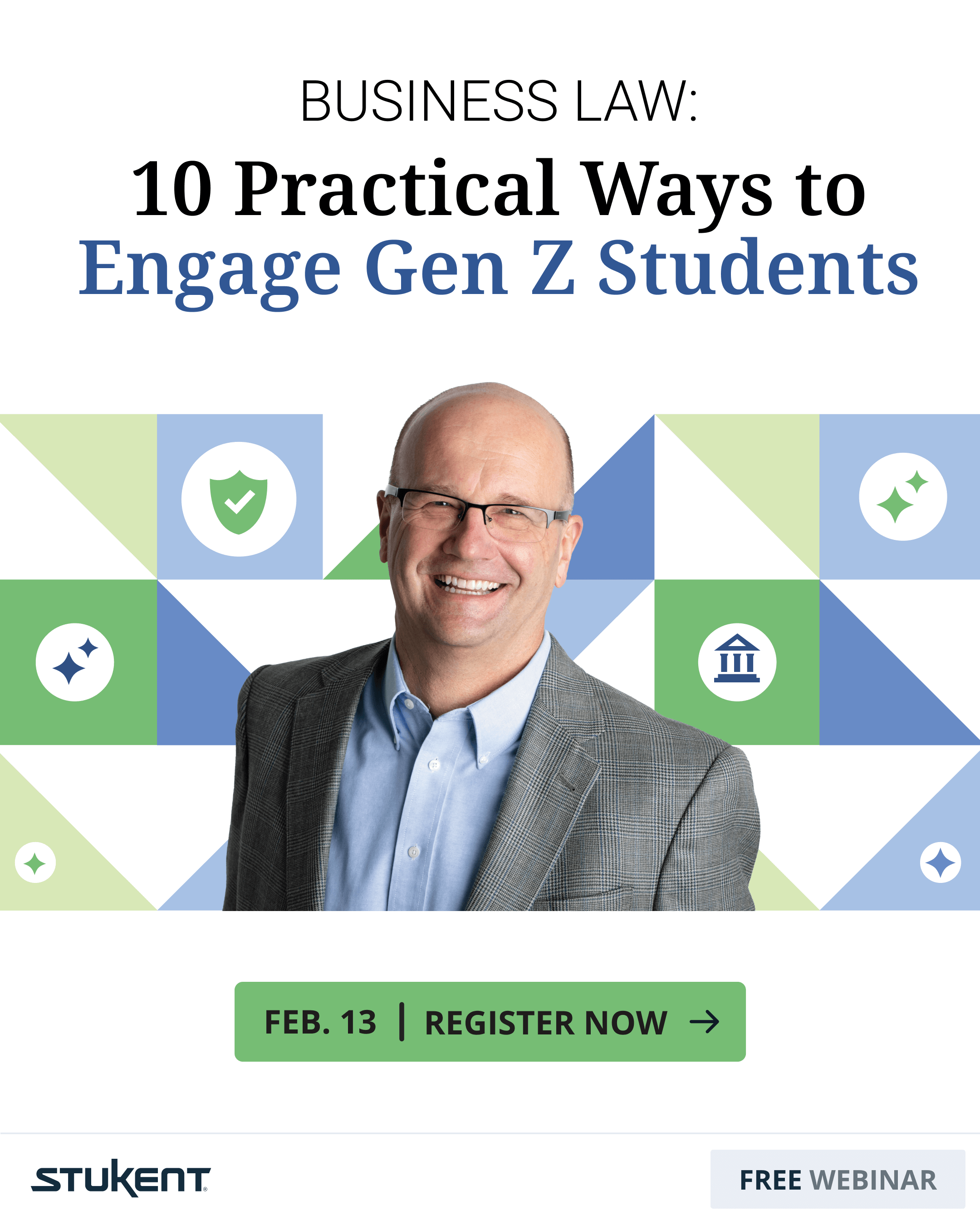 When used together with the Stukent Business Law courseware, educators can easily create robust experiential learning opportunities for students.